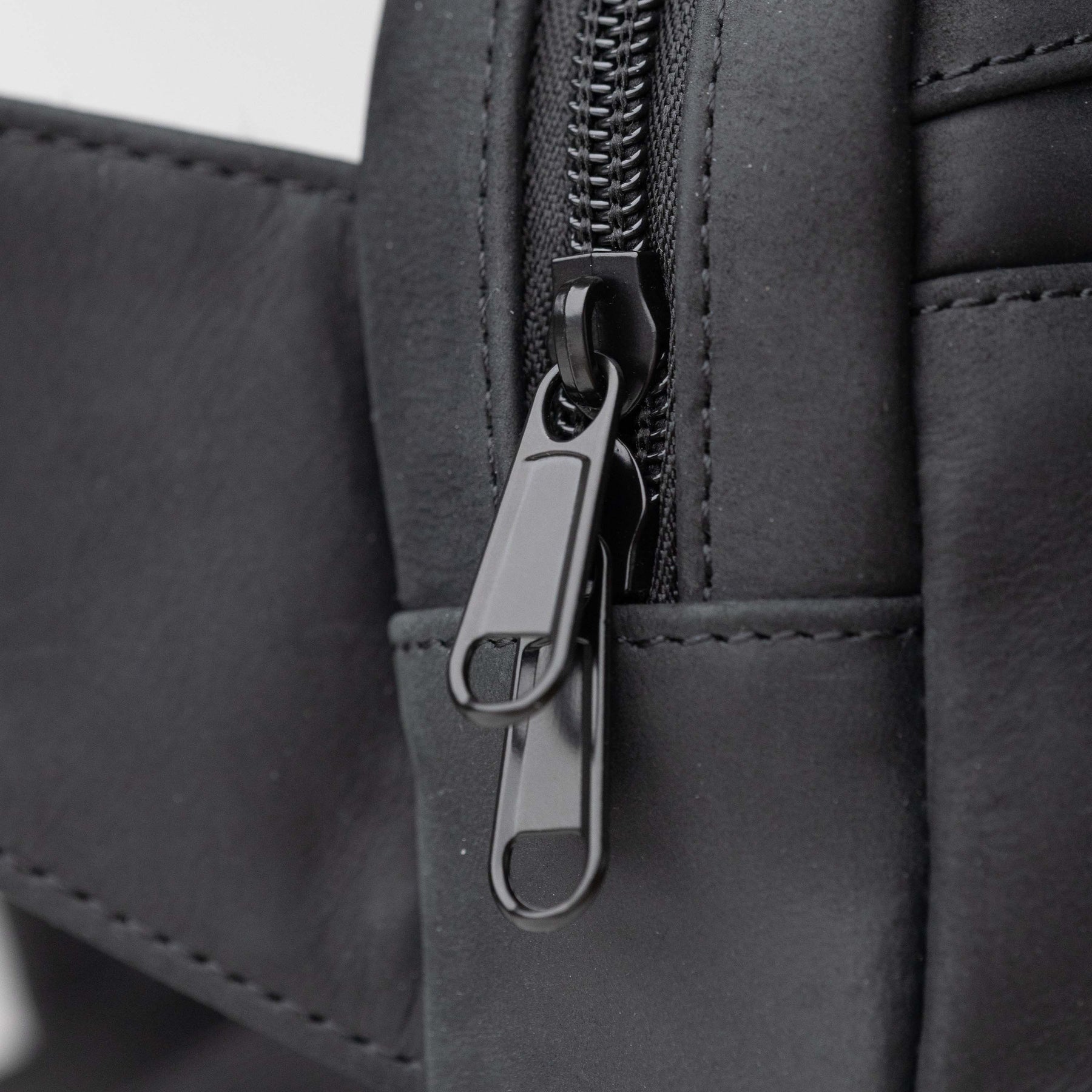 Main interior fits camera, wallet, and gear. Includes hidden pocket, front pocket, and rear slip pocket for fast access and organization.