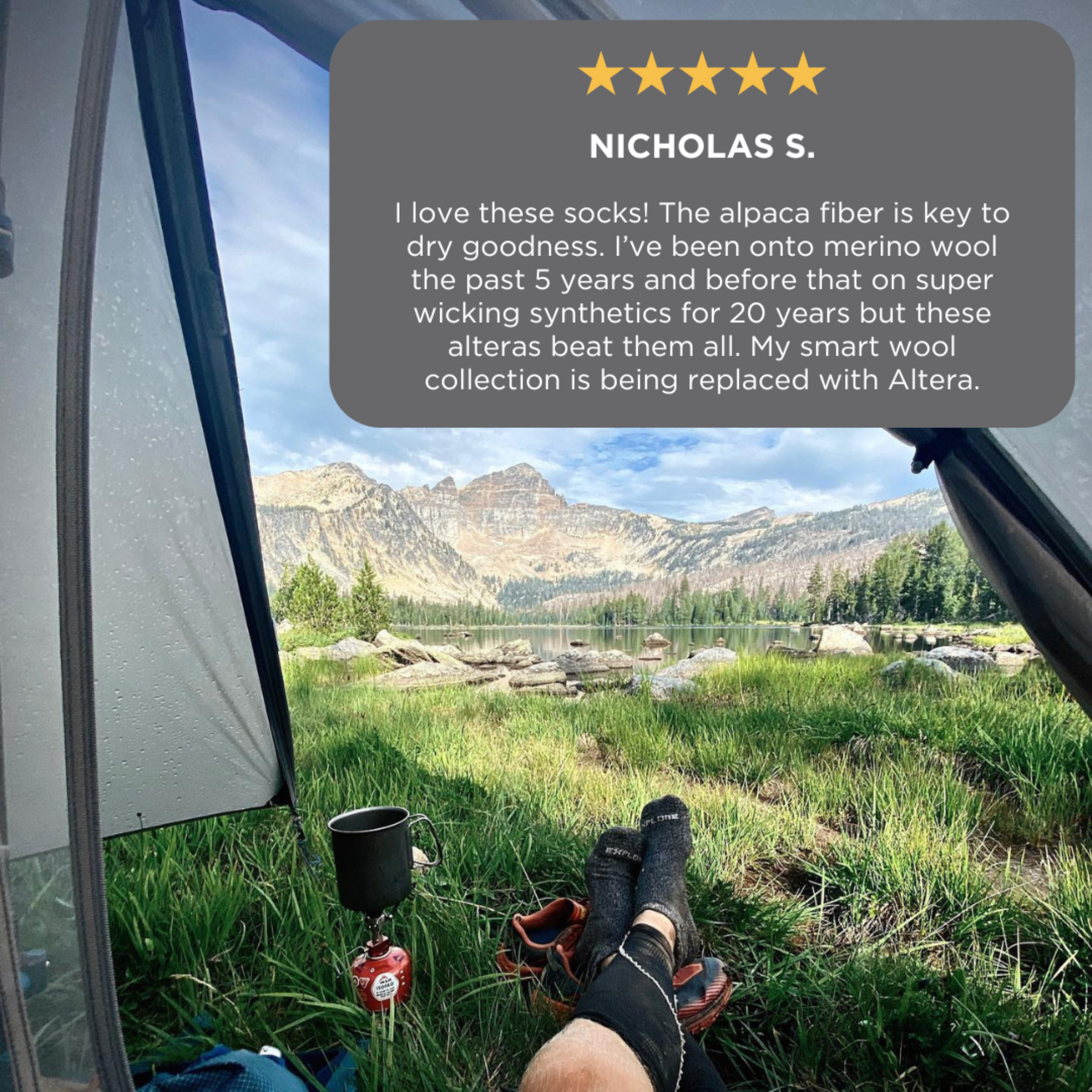 • Moisture-Wicking & Odor-Resistant: Alpaca fiber keeps feet dry and fresh through long days and warm conditions.