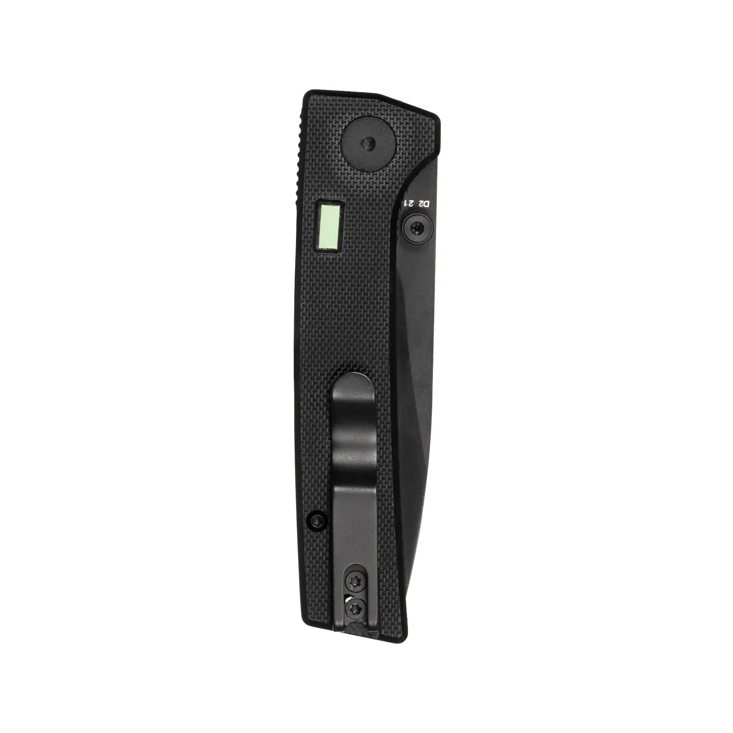 The Fermi is offered in G10 scales with a black PVD drop-point blade.