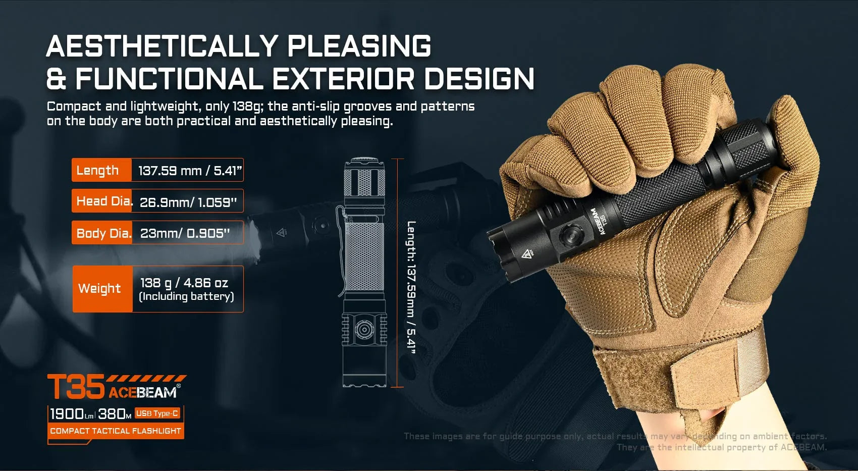The ACEBEAM T35 stands up to challenging conditions and is a steadfast companion for outdoor adventures.
