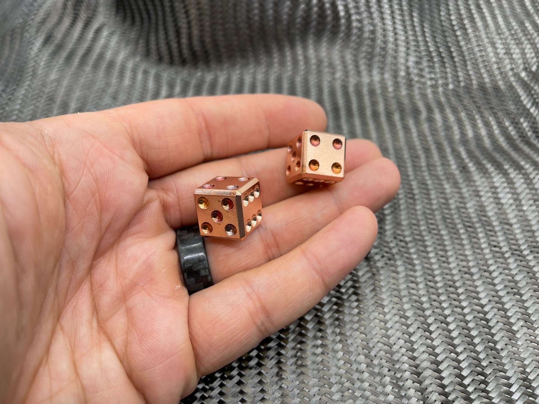 Each dice will start to shows subtle signs of patina due to the beautiful nature of copper