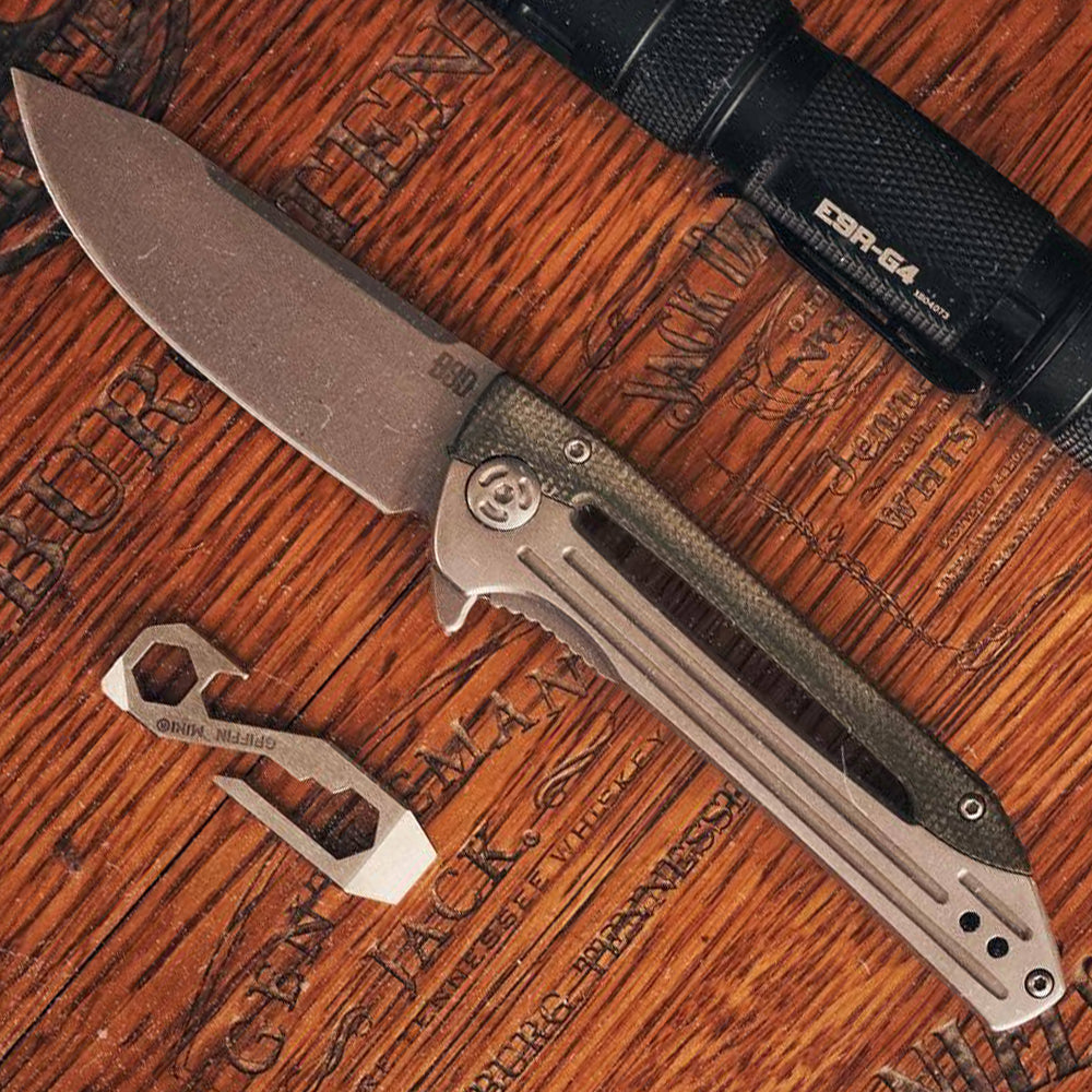 Function over beauty? Beauty over function? How about both? Because that is what Braden Sweeten is known for. Raised in the Rocky Mountains afforded Braden to spend time in some of the most amazing outdoors spaces in the United States. The Rocky Mountains are beautiful and when in the outdoors such as that you need functional gear. This 7.5” overall knife is called the Bruter. Coming in at 107 grams with a 3.15” VG10 blade the Bruter is ready for any EDC task including the ones that need some brute force. The marriage of micarta and stainless scales really set this liner lock folder apart from the crowd.