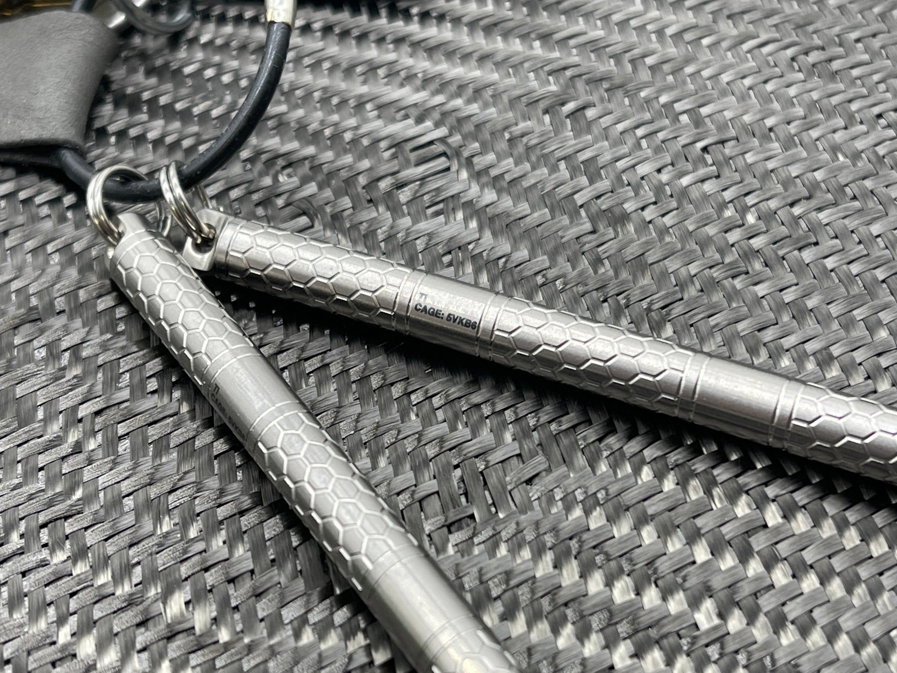 Includes custom nylon case and titanium split rings