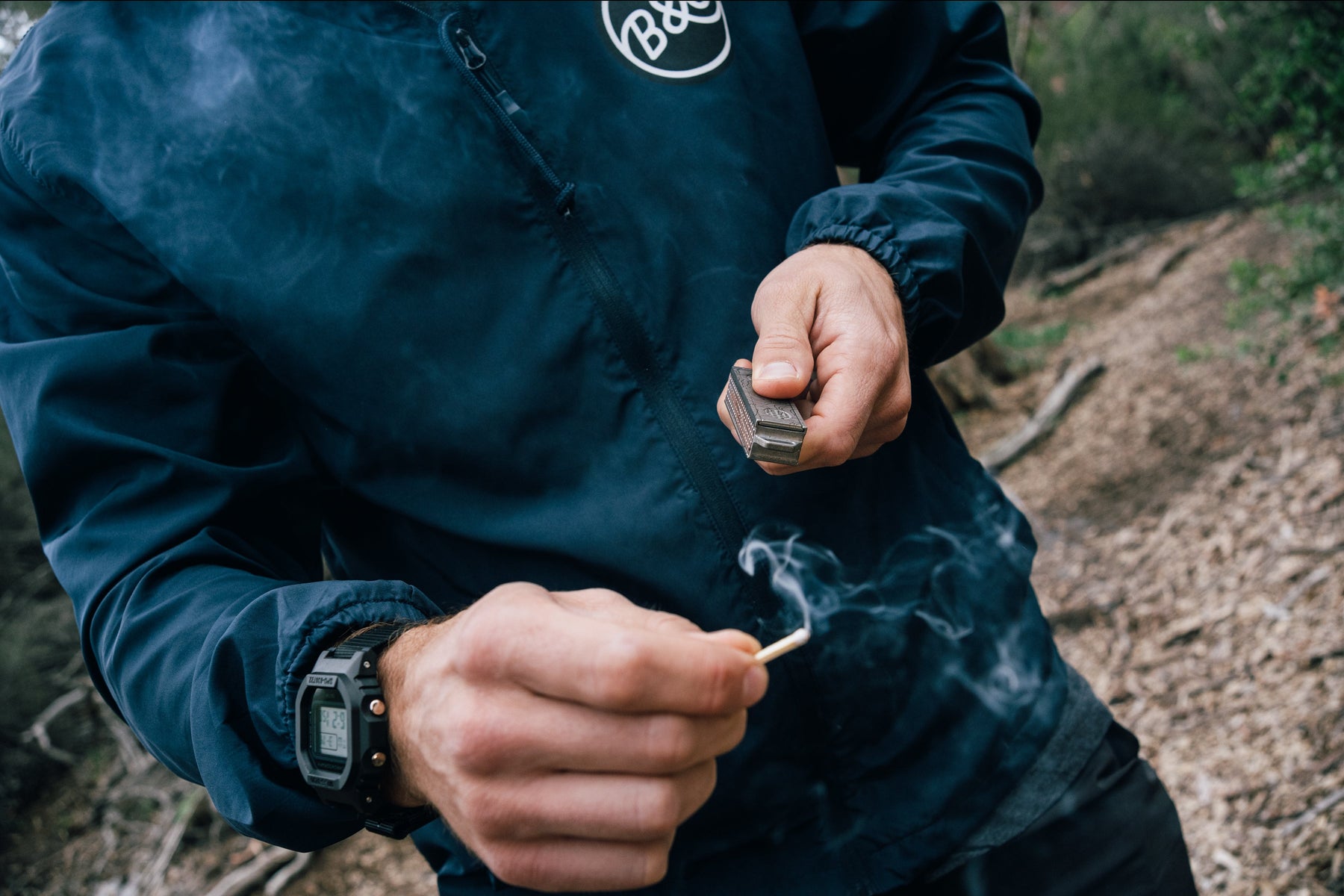 There is a strike pad on both sides of the case